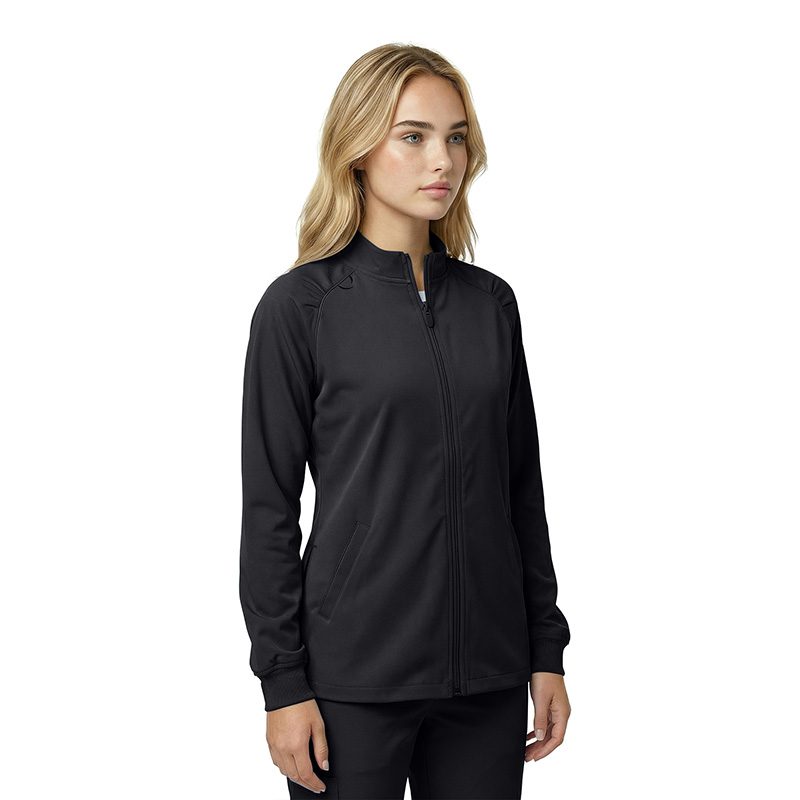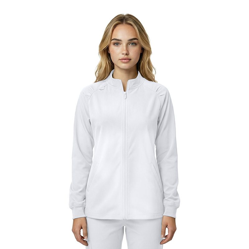 • FULL ZIP-FRONT WITH STAND COLLAR – Easy zip-front design allows quick layering over scrub tops while maintaining a polished appearance.